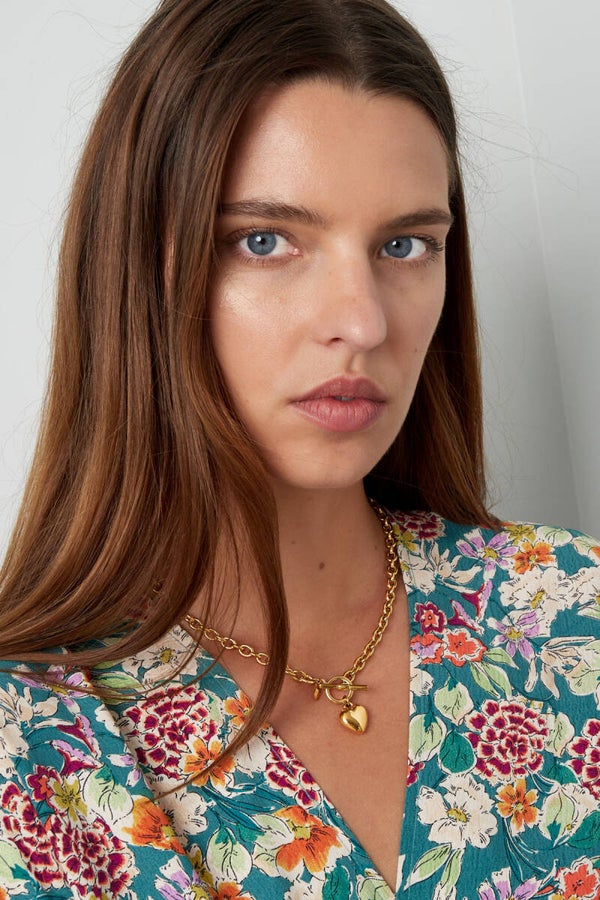 Schakelketting ronde sluiting met hart - goud