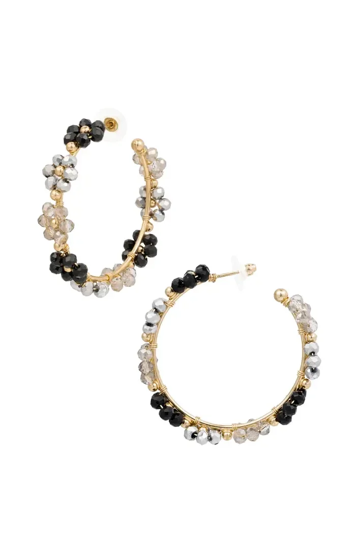 Van deze vrolijke gouden oorbellen met oranje bloemetjes word je toch meteen vrolijk! Deze oorbellen zijn perfect te combineren met meerdere matchende sieraden en accessoires en superleuk te dragen tijdens een zomerse gelegenheid! De oorbellen zijn gemaakt van metaal en kristalkralen en hebben een lengte van 5 cm! Je shopt deze prachtige oorbellen in de volgende kleuren: oranje, wit, zwart/grijs, paars en donkerblauw!