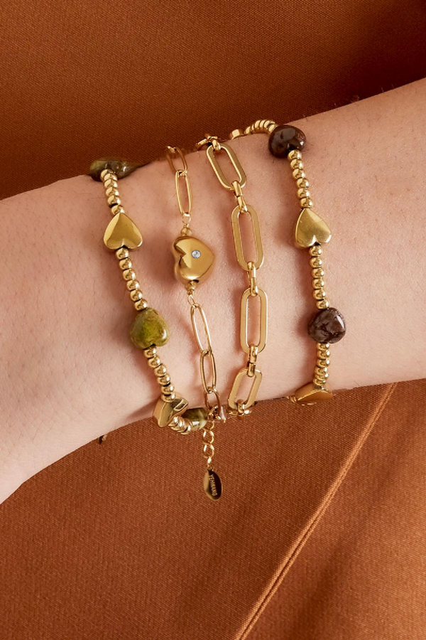 Armband Amour Brillant - Schakel met hartdetail ( wit of groen) - Goud