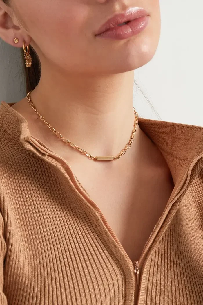Ervaar de verfijnde allure van onze Sérénité schakelketting, geïnspireerd door de Franse stijl. Deze gouden roestvrijstalen ketting met delicate bedel straalt tijdloze elegantie uit en voegt een subtiele verfijning toe aan elke outfit. Of je nu kiest voor een ingetogen look of de ketting combineert met andere sieraden voor een trendy uitstraling, Sérénité past moeiteloos bij elke gelegenheid. Het duurzame en stijlvolle ontwerp maakt deze ketting de perfecte keuze om je stijl te upgraden en je innerlijke charme te laten stralen.