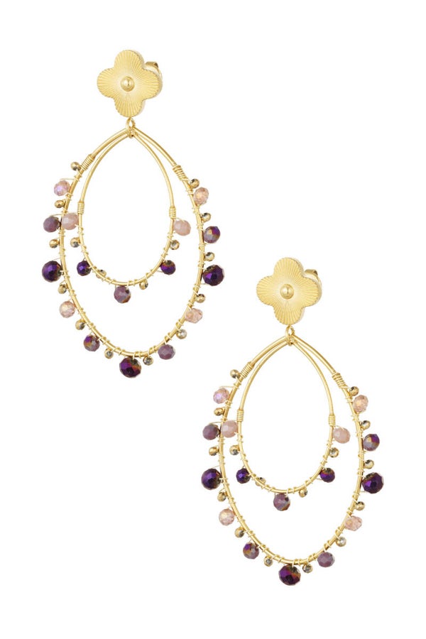 Oorbellen Aurélie dubbel ovaal met kralen - Meerdere kleuren