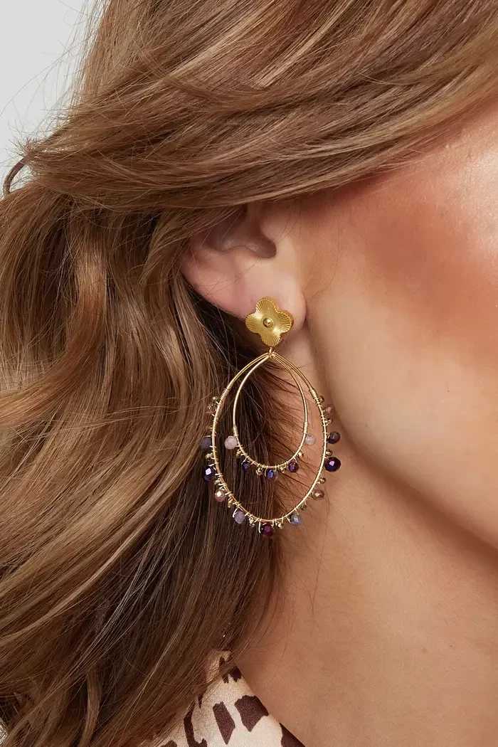 Ben jij ook gek op oorbellenparty's? Ontdek dan snel deze gouden oorbellen in ovale vorm met 2 lagen groene of paarse kralen met klaverdetail bij Lady Lotus Store! Mega trendy en perfect te combineren met subtiele oorbellen voor een prachtige look. Mix ze ook met diverse kralensieraden voor extra flair. Gemaakt van roestvrij staal en kristallen kralen, 6 cm groot. Verkrijgbaar in goud/groen of goud/paars. Shop nu!