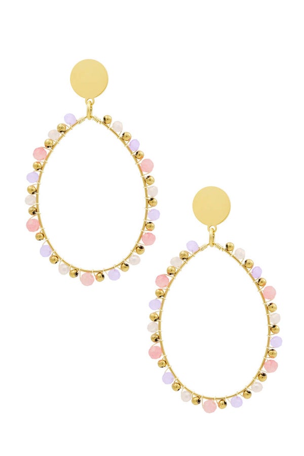 Oorbellen ovale hanger met kralen - Meerdere kleuren