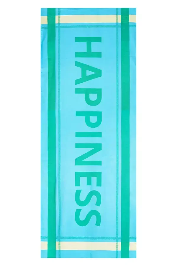 Voeg een vleugje geluk toe aan je outfit met onze blauwgroene sjaal, met het inspirerende woord 'Happiness' erop. Gemaakt van 100% viscose, biedt deze sjaal niet alleen comfort, maar ook stijl. Met afmetingen van 60 bij 190 centimeter is hij ruim en veelzijdig, perfect voor elke gelegenheid. Laat je omhullen door positieve energie terwijl je straalt met deze sjaal!