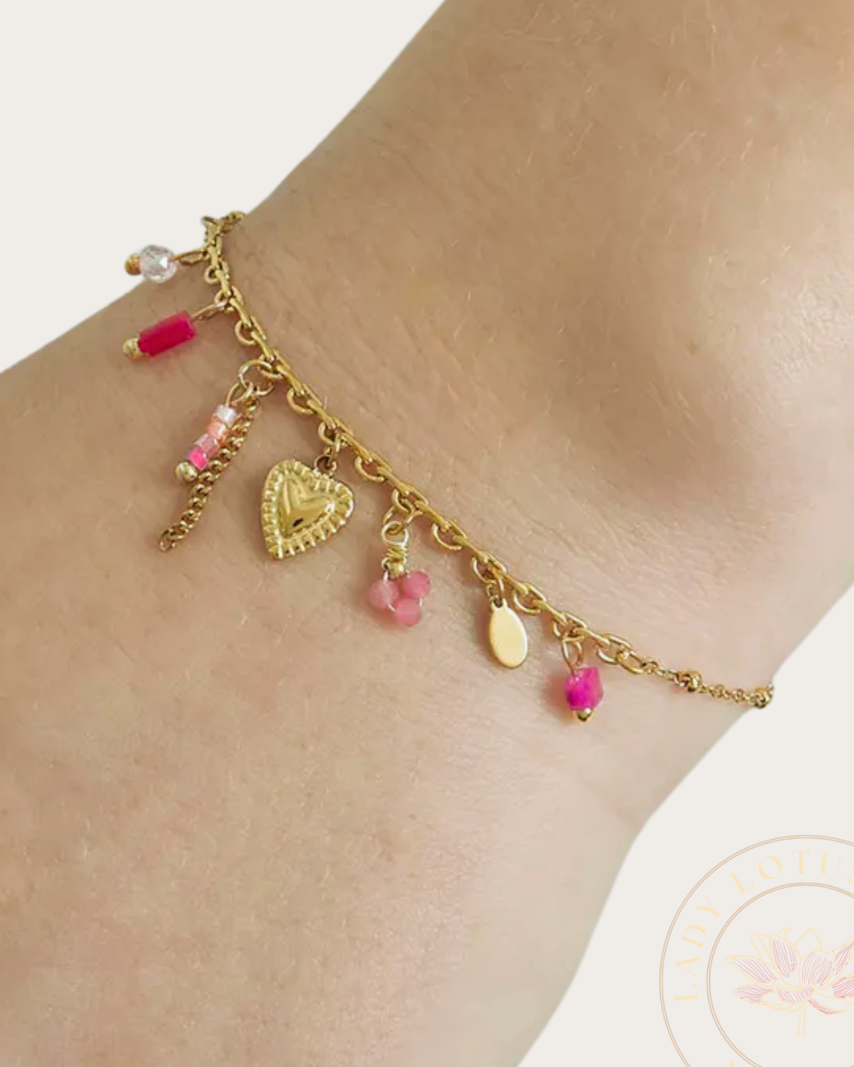 Armband Lucky Charm Roze Fiesta - Goudkleur